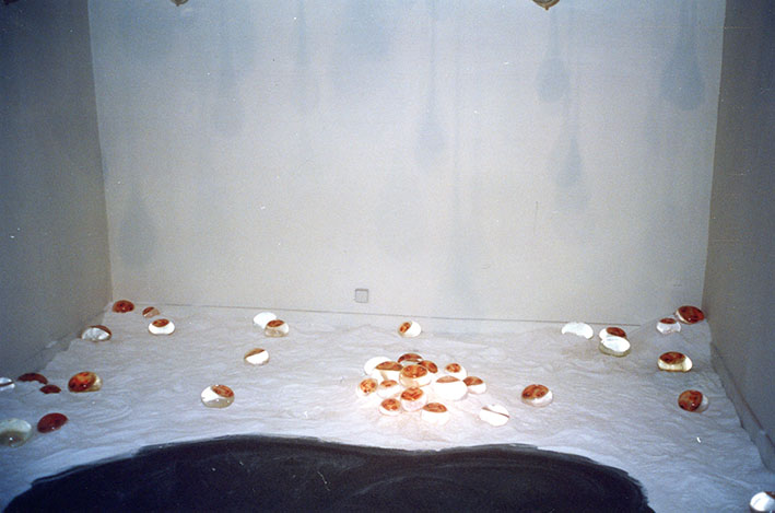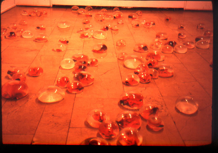 Mixed media installation (condoms, water, digital print photographs)