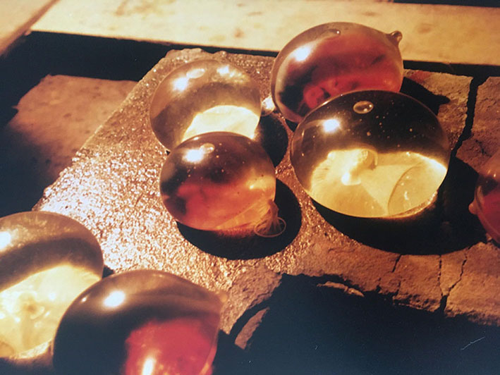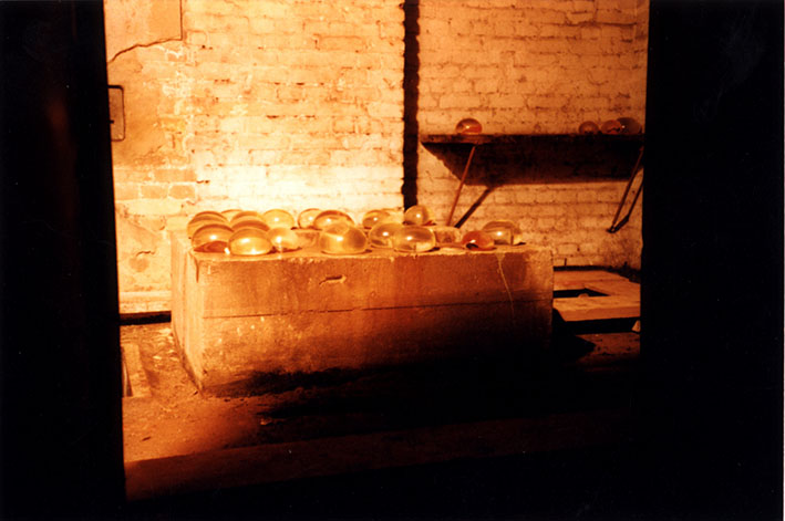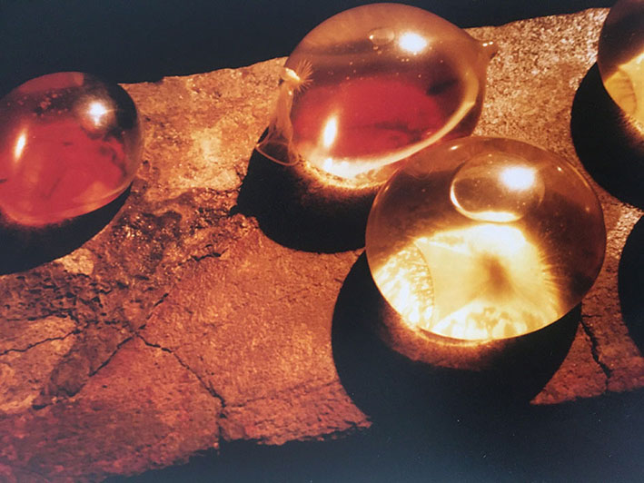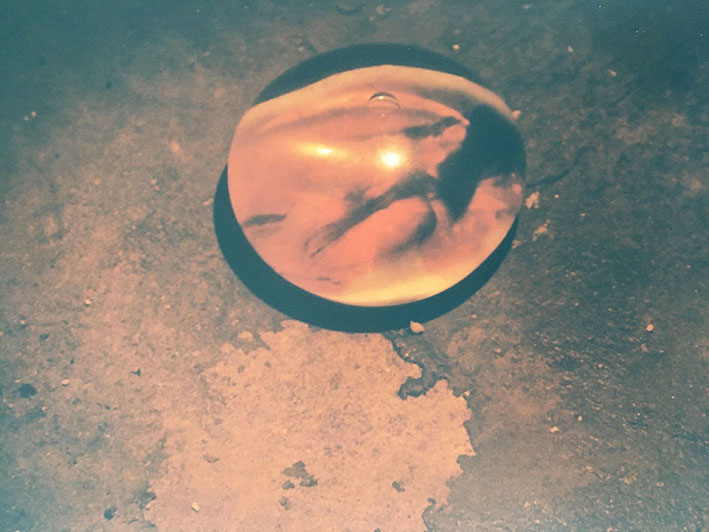 Karışık teknik enstalasyon (prezervatifler, dijital baskı fotoğraflar, su)