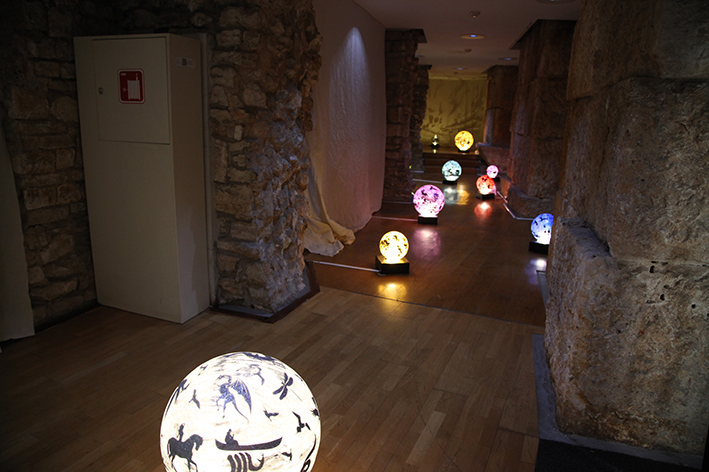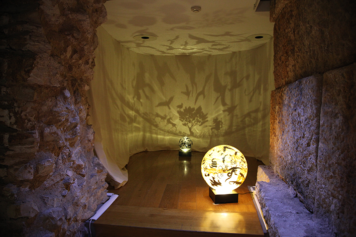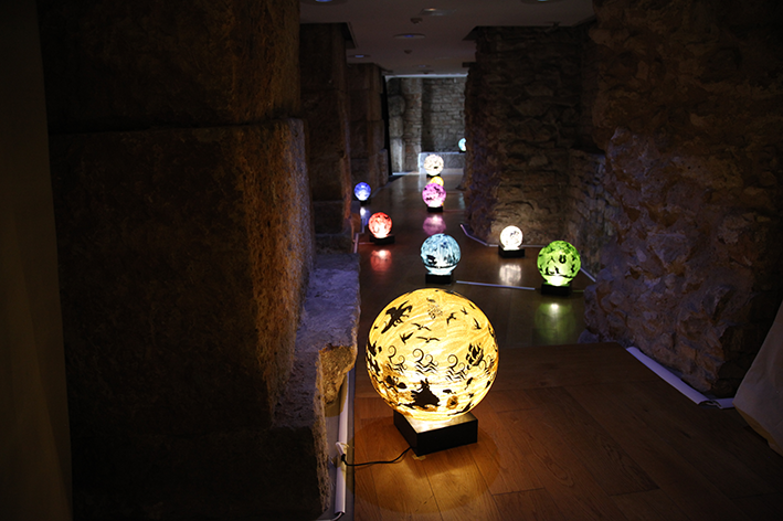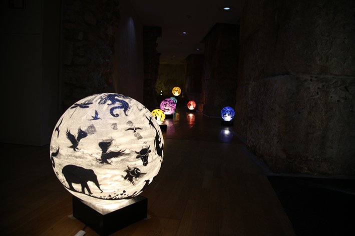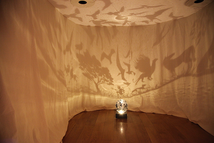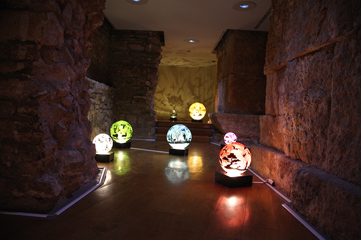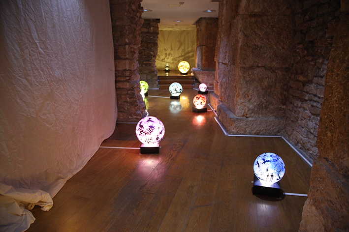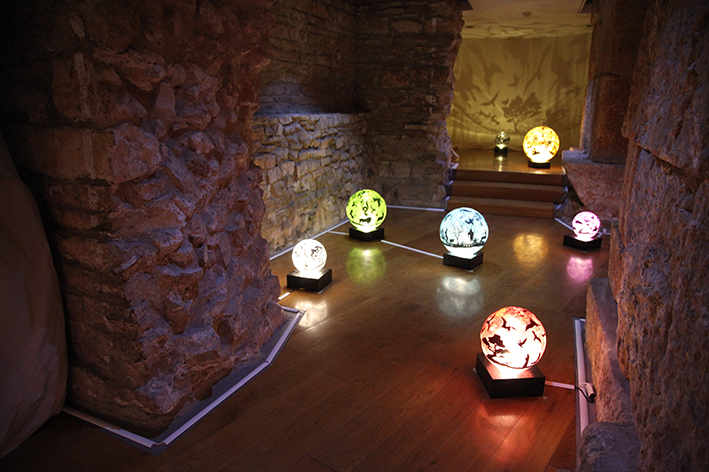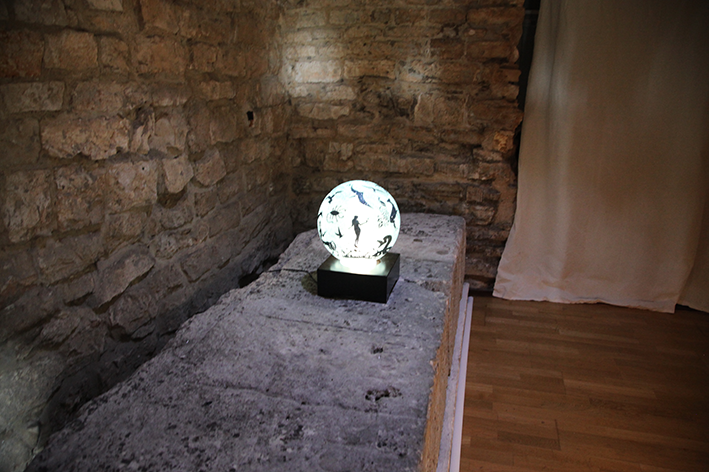 Plexiglass sphere, sticker, glitter, rotating mechanism